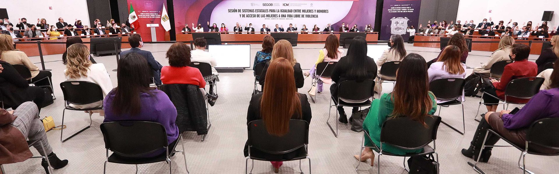 La sesión efectuada en la conmemoración del Día Internacional de la Mujer, fue presidida por el gobernador del Estado de Coahuila, Miguel Ángel Riquelme Solís, el secretario de Gobierno, Fernando de las Fuentes Hernández, la titular del Instituto Coahuilense de las Mujeres, Katy Salinas Pérez, la coordinadora de Políticas Públicas para la Erradicación de la Violencia de la Comisión Nacional para Prevenir y Erradicar la Violencia Contra las Mujeres (CONAVIM),  Sayda Yadira Blanco Morfín y del Magistrado Presidente del Tribunal Superior de Justicia del Estado, Miguel Mery Ayup.