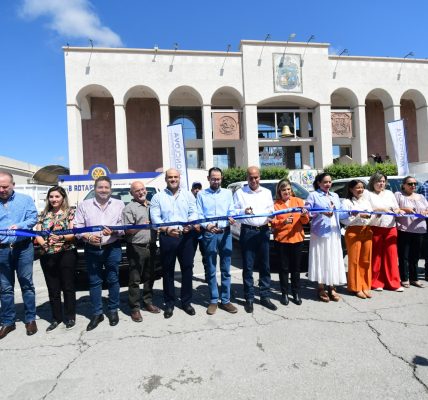 14 noviembre 2019; Monclova, Coahuila.-El alcalde de Monclova Alfredo Paredes López y la presidenta del DIF municipal Pamela Garanzuay de Paredes, fueron invitados especiales a la inauguración de la unidad médica móvil en la planta SS Synergy, junto con ellos estuvo en el presídium, Napoleón Cantú Treviño, director general del Grupo Industrial Monclova.