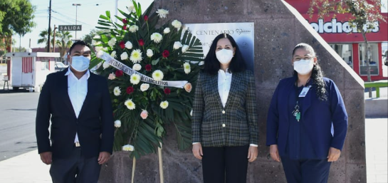 Como parte del homenaje y como una muestra de reconocimiento a la importante labor realizada por el maestro Contreras Méndez, el alcalde hizo entrega del escudo de la ciudad, una obra de arte elaborada por el historiador monclovense, Jesús Guajardo, a Candelaria López Aguilar, que acudió en representación de la familia.