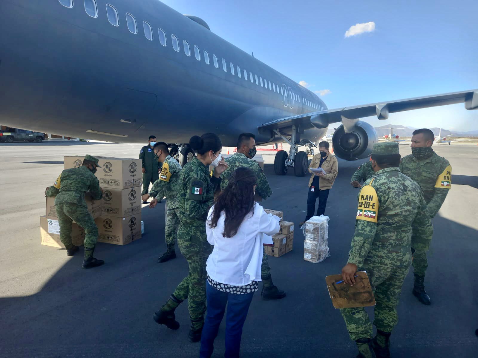 Externó que el equipo de vacunación estatal, de Epidemiología y de Prevención de la Salud acudió esta tarde a las instalaciones del aeropuerto internacional “Plan de Guadalupe”, en Ramos Arizpe, a donde llegó el cargamento en una aeronave del Ejército Mexicano.