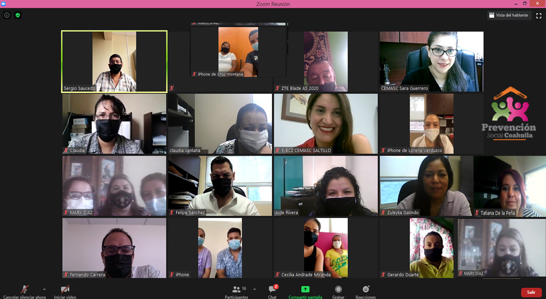 06 agosto 2021; Saltillo, Coahuila.- Con el objetivo de generar entornos de paz y tranquilidad dentro de las familias coahuilenses, se llevó a cabo una conferencia de manera virtual para líderes comunitarios y servidores públicos de la Dirección de Prevención Social de la Violencia y la Delincuencia del Estado, con el tema “Habilidades de Convivencia Pacífica”, impartida por personal del Centro de Medios Alternos de Solución de Controversias del Poder Judicial del Estado de Coahuila.