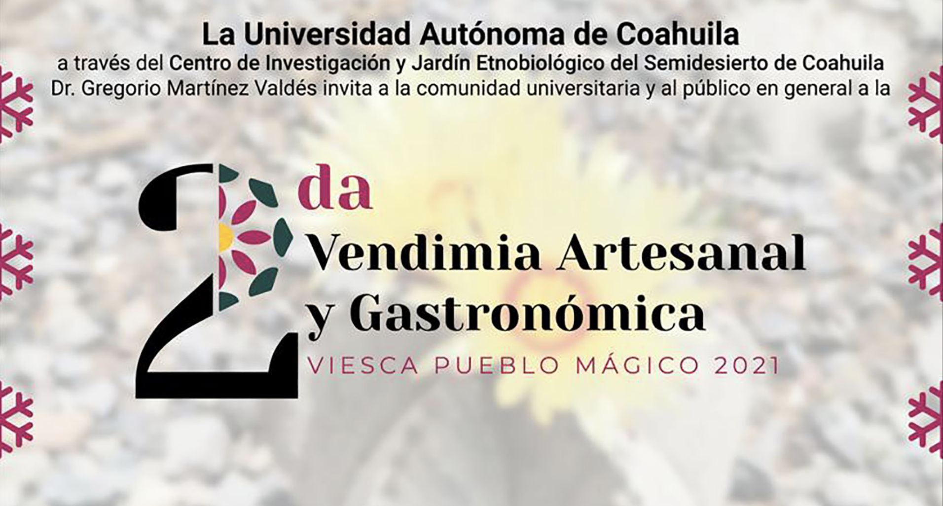 No te Pierdas el Próximo 18 de Diciembre la “Segunda Vendimia Artesanal” Por Alberto Casas 15 diciembre 2021; Viesca, Coahuila.- El Centro de Investigación y Jardín Etnobiológico del Semidesierto de Coahuila “Dr. Gregorio Martínez Valdés” de la Universidad Autónoma de…