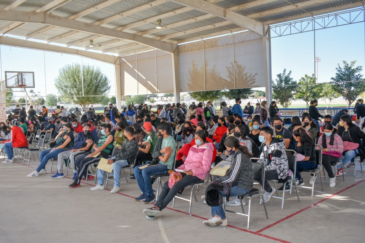En la Unidad Deportiva “Benito Juárez”, en una acción coordinada entre los tres niveles de Gobierno, estando presente por parte de la Presidencia Municipal el personal de las áreas de Desarrollo Social y Salud Municipal, como grupo de apoyo.