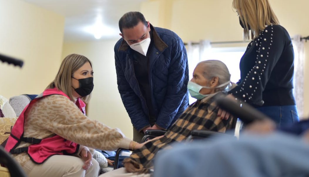 14 enero 2022; Acuña, Coahuila.- Para conocer la situación actual y necesidades de los residentes de la Casa del Adulto Mayor, el alcalde Emilio de Hoyos Montemayor y la presidenta honoraria del Sistema DIF Yahaira Romero, les visitaron a temprana hora e interactuaron con los hombres y mujeres mayores, así como con el personal que les atiende en tres turnos laborales.