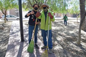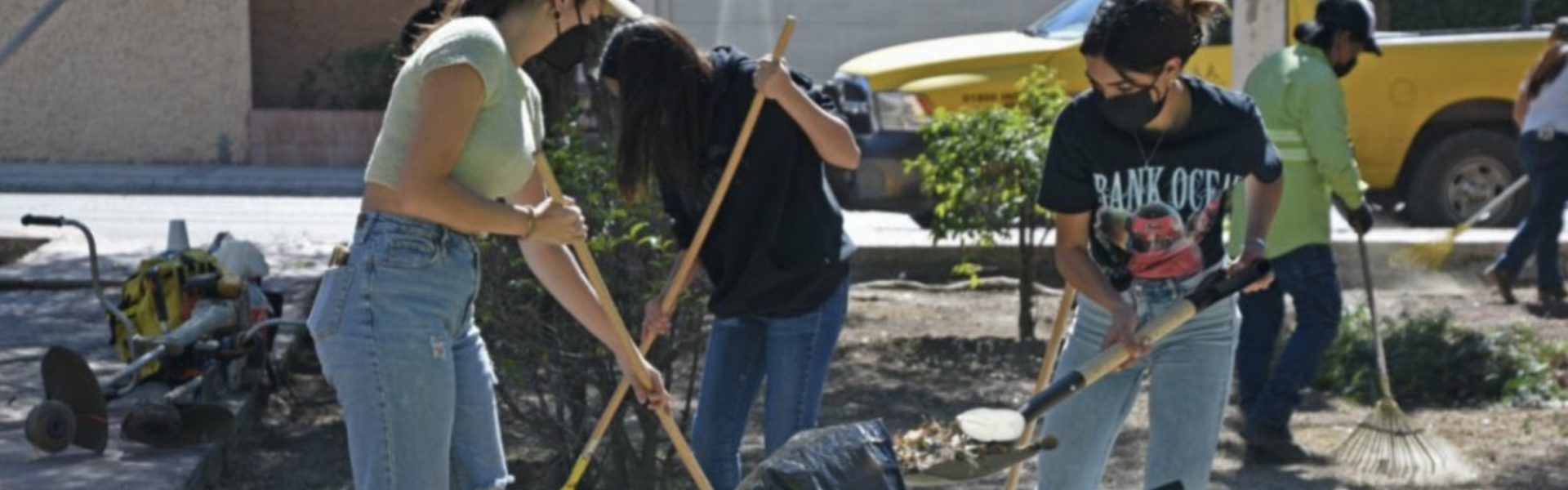 23 febrero 2022; Saltillo, Coahuila.- Estudiantes del Instituto Tecnológico y de Estudios Superiores de Monterrey, Campus Saltillo, y personal de la Dirección de Medio Ambiente y Espacios Urbanos llevaron a cabo trabajos de limpieza y embellecimiento en una de las plazas públicas de la colonia Cumbres.