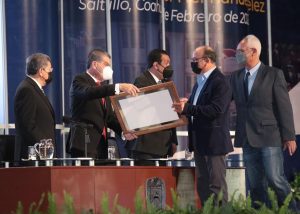 De la misa forma, entregó un reconocimiento a la ganadora del Premio Estatal de Ciencia, Tecnología e Innovación Coahuila 2021, la doctora catedrática de la Facultad de Ciencias Químicas Ana Ilina, así como a los 25 años del programa “Lobos de Rescate” y al Centro de Investigaciones Socioeconómicas.
