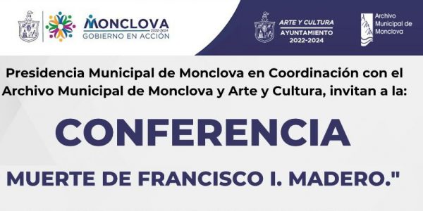 CONFERENCIA SOBRE LA MUERTE DE FRANCISCO I MADERO Por Gregorio Esparza 22 febrero 2022; Monclova, Coahuila.-La Dirección de Arte y Cultura en coordinación con el Archivo Municipal te invita a la conferencia MUERTE DE FRANCISCO I. MADERO presentada por…