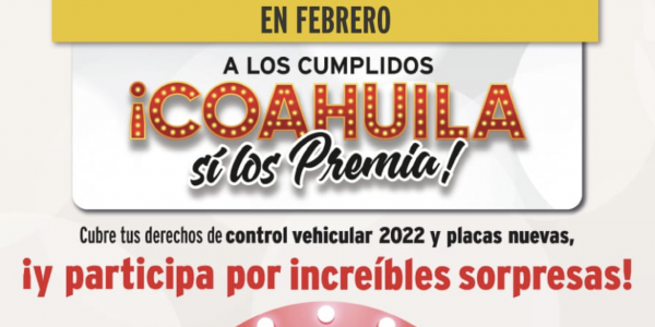 EN COAHUILA A LOS CUMPLIDOS SÍ LOS PREMIA Por Jorge Moreno 15 febrero 2022; Saltillo, Coahuila.- El Gobierno del Estado de Coahuila, durante este mes de febrero, te invita a cubrir tus derechos de control vehicular y placas 2022. La…