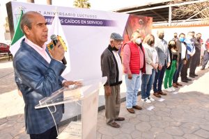 Fue en la plaza del bombero, donde se recordó a los bomberos caídos, Juan Francisco Estrada, R-4; Juan Enrique Salas López, R-14; Martín Lucio Cepeda, R – 36, y Javier Ortiz, R-60, donde fueron recordados por sus compañeros autoridades y la sociedad en general, colocando la ofrenda floral, en el monumento que fue erigido en honor a su sacrificio.