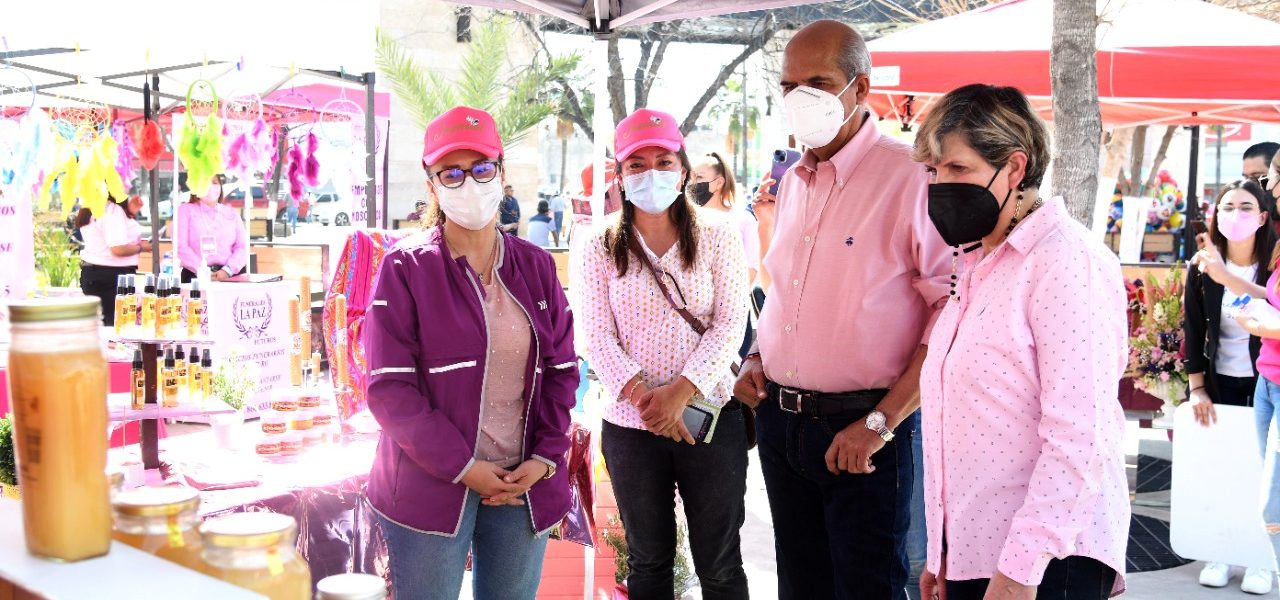 Recorrió cada uno de los estantes colocados por las mujeres emprendedoras y personalmente las felicitó por su talento.