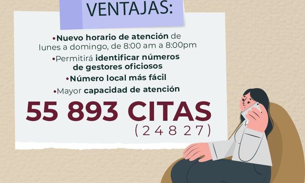 La dependencia señaló que con este cambio se amplían los horarios de atención para la programación de citas, comprendiendo un horario de servicio extendido de lunes a domingo, de las 08:00 a las 20:00 horas.