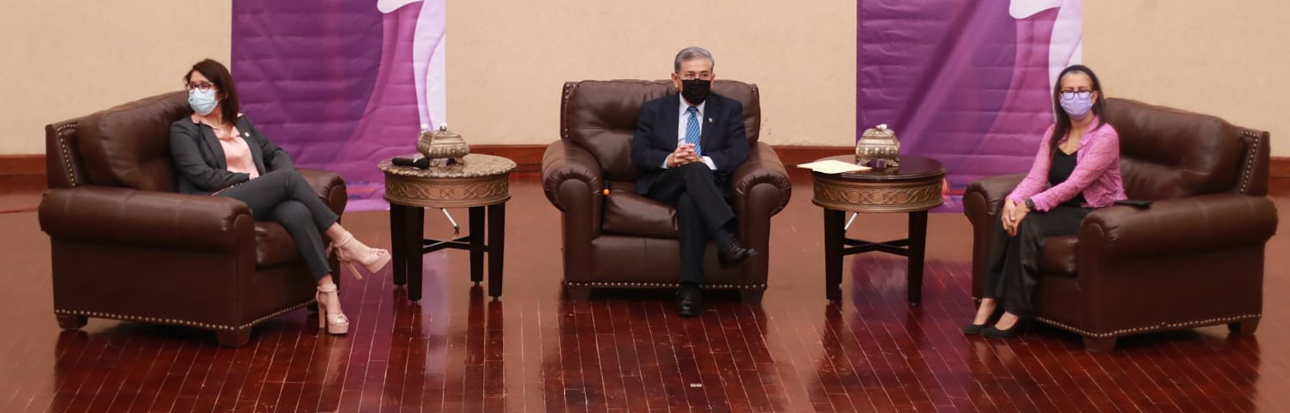 En la reunión efectuada en el Aula Magna de la Unidad de Seminarios UN, estuvieron presentes el rector de la máxima casa de estudios, Salvador Hernández Vélez, el coordinador de la Unidad Norte, Juan Carlos Talamantes Arredondo, la titular de la Defensoría de los Derechos Humanos Universitarios, Magda Yadira Robles Garza, la coordinadora de Igualdad de Género, Magdalena Jaime Cepeda y el coordinador general de Educación a Distancia, Félix Ibarra Linares.