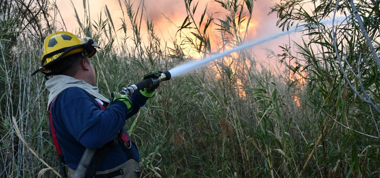 Gracias a la rápida acción de los cerca bomberos, en ningún momento existió el riesgo de que las llamas pudieran alcanzar las viviendas que se ubican a las orillas del rio sobre la calle Álamo.