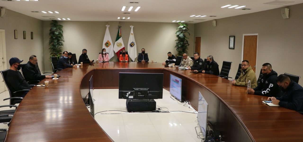 15 marzo 2022; Piedras Negras, Coahuila.-Acompañada por la Secretaria de Seguridad Pública del Estado, Sonia Villarreal Pérez, la Alcaldesa Norma Treviño Galindo se reunió con funcionarios de los tres órdenes de gobierno para evaluar como cada semana la incidencia delictiva en Piedras Negras.