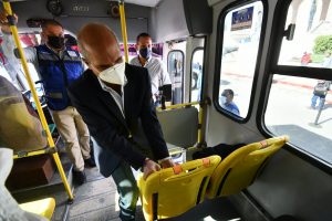 Al concluir el mensaje, el alcalde, subió a las unidades para colocar simbólicamente la calca, que posteriormente será colocada en cada una de las unidades que integran las diez rutas municipales.