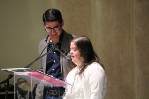 La joven Carolina Cortés Flores, quien habló en representación de las personas con síndrome de Down dijo: “Les quiero pedir algo a todos con mucho amor desde mi corazón, que nos acepten, que nos incluyan y que nos amen”.