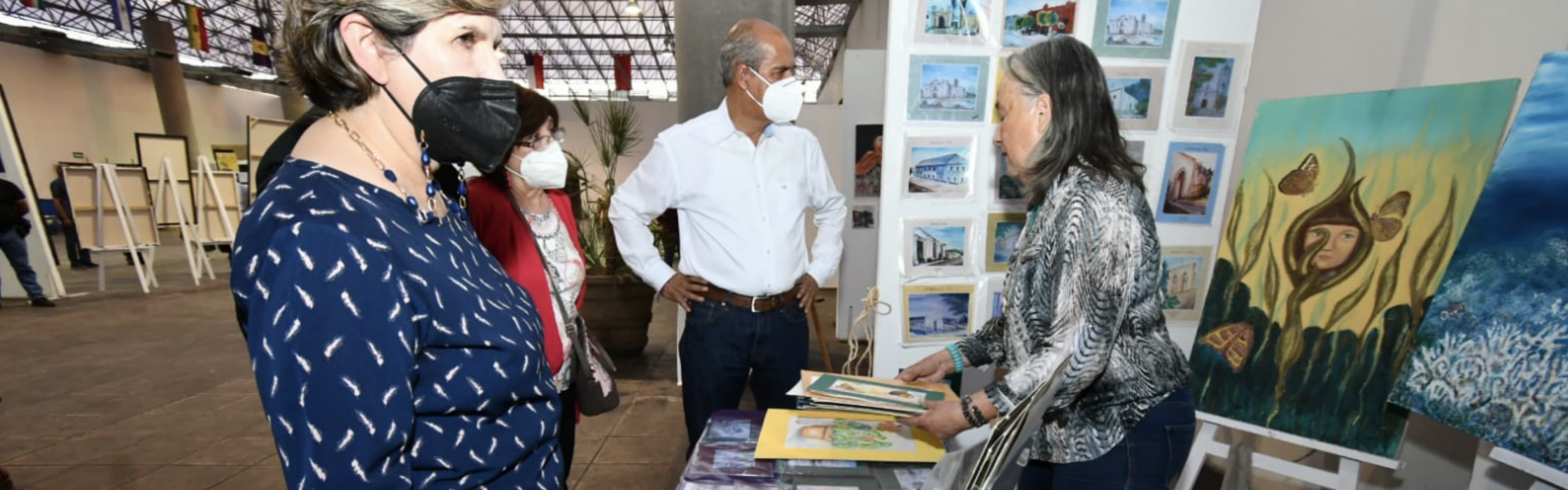 28 marzo 2022; Monclova, Coahuila.-El alcalde Dr, Mario Dávila Delgado, la presidente del DIF, Dr. Leticia Carrillo y la secretaria de cultura en el Estado, hicieron recorrido por los stands y exhibiciones que estuvieron vigentes en la feria del Arte 2022.