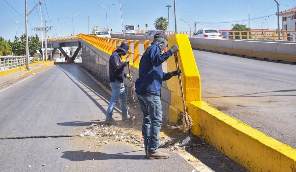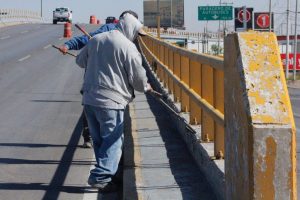 29 marzo 2022; Torreón, Coahuila.-La Dirección General de Servicios Públicos Municipales, continúa con el mantenimiento de vialidades e infraestructura en el municipio, hasta la fecha se han realizado acciones de rehabilitación en 17 de 35 puentes.