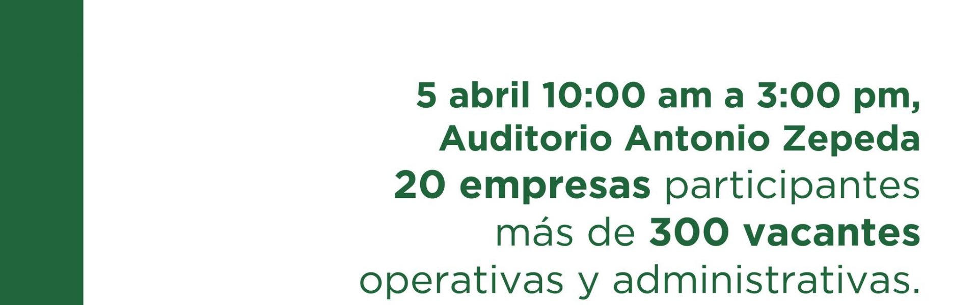 La cita es este martes 5 de abril en el Auditorio Antonio Zepeda, de 10am a 3pm. ¡Te Esperamos!
