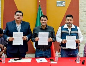 06 abril 2022; San Pedro, Coahuila.-El alcalde DAVID RUIZ MEJIA firmó  un convenio de colaboración entre el INSUS y el municipio de San Pedro, donde se entregaron 97 escrituras a vecinos de la colonia el Mirador Centro.