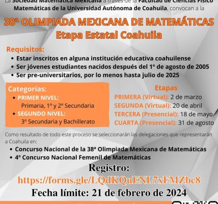 Las bases y el formato de registro están disponibles en la página de la Universidad http://www.uadec.mx/premio-perodismo, los y las participantes deberán enviar el formato de registro junto con una semblanza de una cuartilla sobre su formación y experiencia en el ejercicio periodístico al correo electrónico premiocultural@uadec.edu.mx.