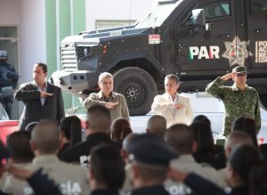 «Por ende, nuestro compromiso es dotar a nuestras Policías, estatales y municipales, cada vez de mejores herramientas y equipamiento, de más patrullas, armamento y municiones de alto calibre, mayor capacitación, uso de la avanzada tecnología de video-inteligencia y estímulos a su desempeño, destacó.