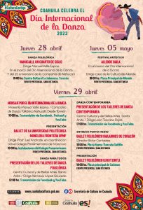 29 abril 2022; Saltillo, Coahuila.- A fin de conmemorar el Día Internacional de la Danza, el Gobierno del Estado, a través de la Secretaría de Cultura (SC), realiza diversas actividades con este objetivo.