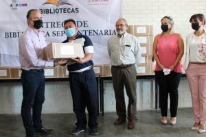 “Hacemos entrega de la Colección ‘Biblioteca SEP Centenaria’, que contiene libros con temáticas dirigidas a los docentes de educación básica y a los padres de familia, con el objetivo de promover la especialización y mejora de los servicios bibliotecarios”, expresó.
