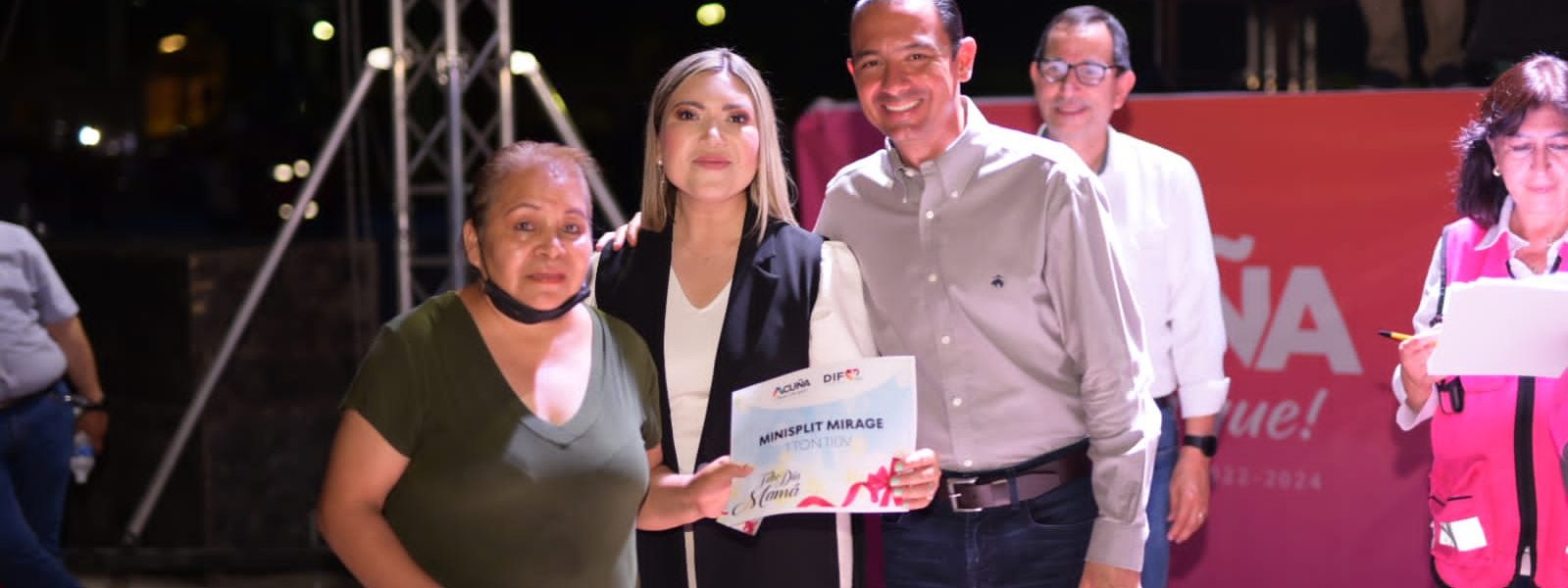 10 mayo 2022; Acuña, Coahuila. – Por ser la madre, el motor de la familia, sociedad y municipio, la Administración Municipal y el Sistema DIF, ofrecieron en homenaje anticipado a las madres de Acuña, concierto musical, espectáculo cómico, rifa de premios y jornada artístico cultural.