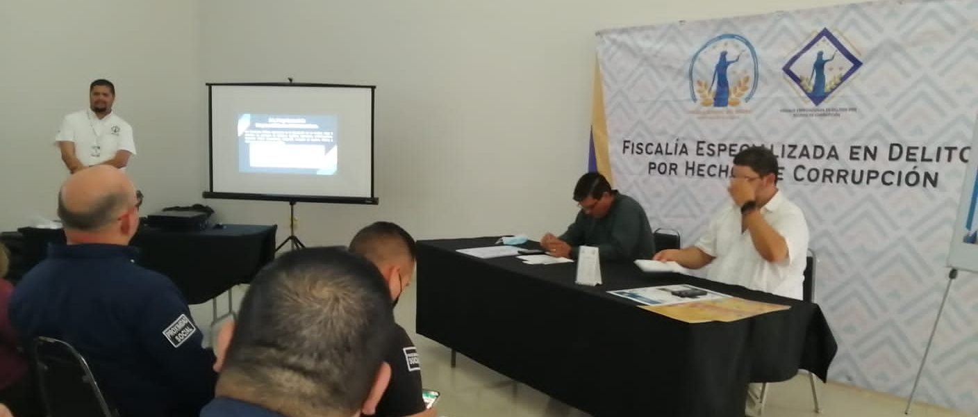 Capacitación que incluyó la presentación de qué es la Fiscalía Especializada en Delitos por Hechos de Corrupción y los delitos que persigue, de acuerdo a lo establecido en el Capítulo undécimo y duodécimo del Código Penal del Estado de Coahuila de Zaragoza, tales como: Peculado, enriquecimiento ilícito, cohecho y otorgamiento ilícito del cargo.