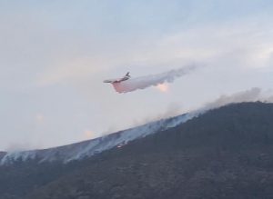19 mayo 2022; Saltillo, Coahuila.- La Secretaría de Medio Ambiente de Coahuila informa que el avión DC-10 Air Tanker, contratado por el Gobierno del Estado para apoyar las labores de combate a los incendios forestales que se registran en la entidad, realizó descargas de 40 mil litros de agua sobre el área de Sierra Hermosa.