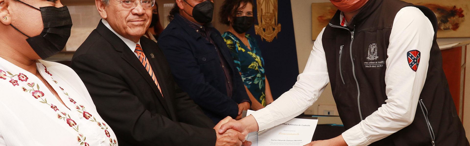 Durante la ceremonia se entregó un reconocimiento póstumo al Dr. Ricardo Cantoral Uriza, el cual fue recibido por la Dra. Magaly Méndez Guevara, a quien también se le entregó un reconocimiento por la impartición del taller, así como un sarape representativo de Saltillo, el libro de autoría del rector Salvador Hernández Vélez “De ciencias, educación y algo más”, al tiempo que el ICH les entregó los libros El infinito de las matemáticas”, “El último teorema de Fermat” y “Del cero al infinito”.