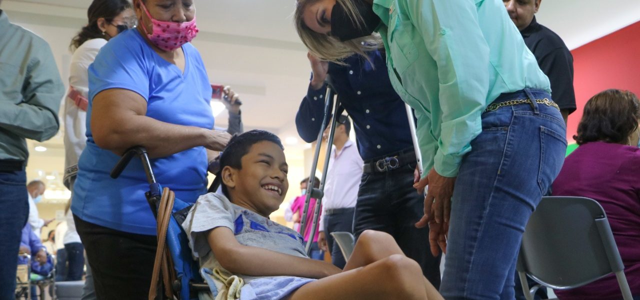 01 junio 2022; Piedras Negras, Coahuila.-La Alcaldesa Norma Treviño Galindo, expresó que es una bendición tener la oportunidad de apoyar a alguien, así de puertas abiertas con quien más lo necesita, como a Axel Gil de la Cruz, que es un niño de 10 años que necesita unas cirugías en su cadera y se le apoya para que vaya a Monterrey y que los doctores de aquí estén atentos con él, hoy se llevó una silla más cómoda para su situación.