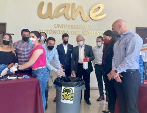 Por otro lado, como acto simbólico alumnos de la UANE destruyeron 196 paquetes de cigarro que fueron confiscados por la Fiscalía General de la República y enviados a la Subsecretaría de Regulación y Fomento Sanitario en Coahuila para su dictamen y destrucción. Los paquetes destruidos, equivalen a 39 mil 200 piezas.