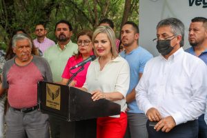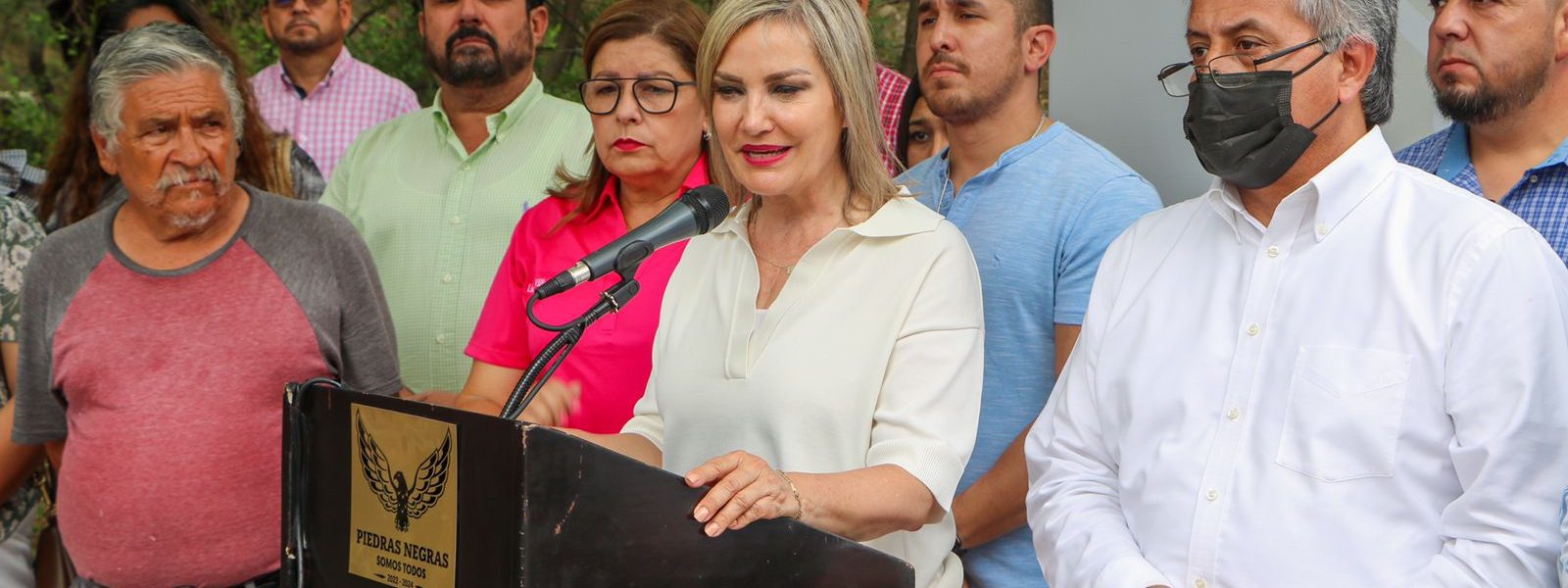 03 junio 2022; Piedras Negras, Coahuila.-La Alcaldesa Norma Treviño Galindo acompañada de integrantes del cabildo llegó a las vegas del Río Bravo donde habrían de dar inicio a una importante obra de puente vehicular para acceder a los campos deportivos de futbol americano y soccer, para beneficiar a cientos de deportistas y sus familias.