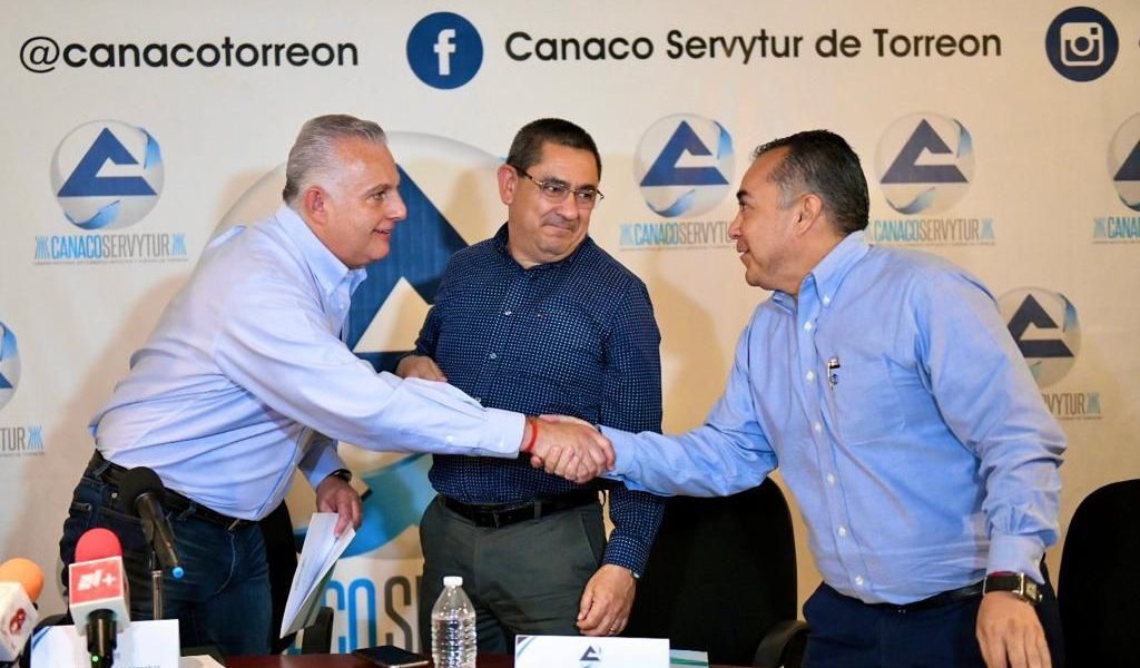 10 junio 2022; Torreón, Coahuila.- El alcalde de Torreón, Román Alberto Cepeda González, firmó un convenio para el cuidado del agua en la ciudad, en el que participan negocios adheridos a la Cámara Nacional de Comercio (CANACO), la Cámara Nacional de la Industria de Restaurantes y Alimentos Condimentados (CANIRAC), y el Sistema Municipal de Aguas y Saneamiento (SIMAS).