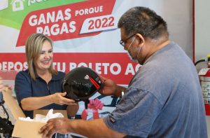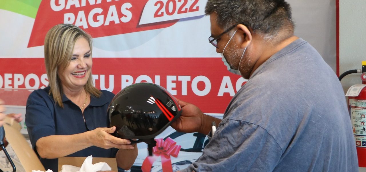 18 junio 2022; Piedras Negras, Coahuila.-La Alcaldesa, Norma Treviño Galindo, hizo entrega de los premios del tercer y segundo del sorteo «Ganas Porque Pagas».