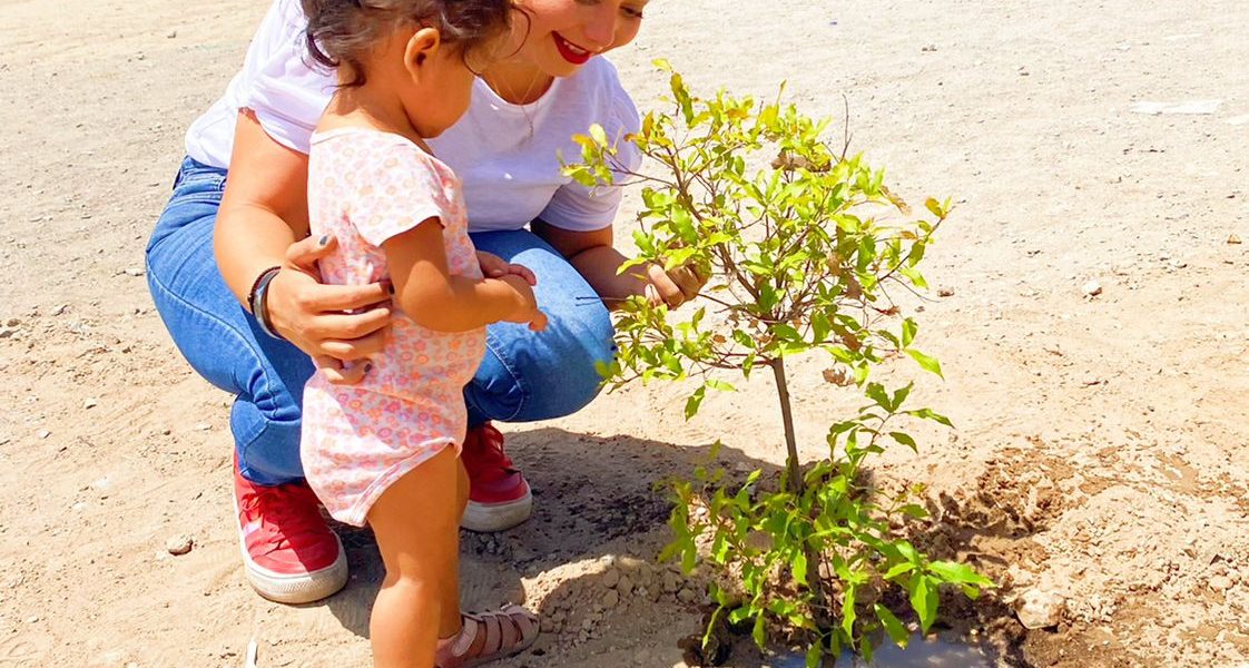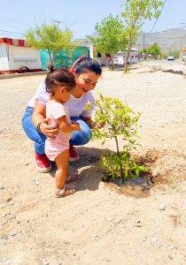 20 junio 2022; Monclova, Coahuila.-La regidora de Juventud y Deporte, Valentina Aranda, en coordinación con la Fundación Impulso, de la ciudad de Saltillo, que dirige Fernando Martínez, trabajaron con las familias de las colonias, Colinas de Santiago y Tierra y Esperanza, donde sembraron una veintena de árboles.