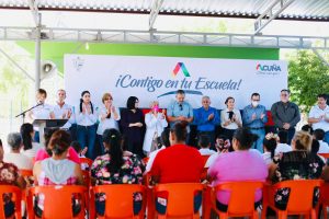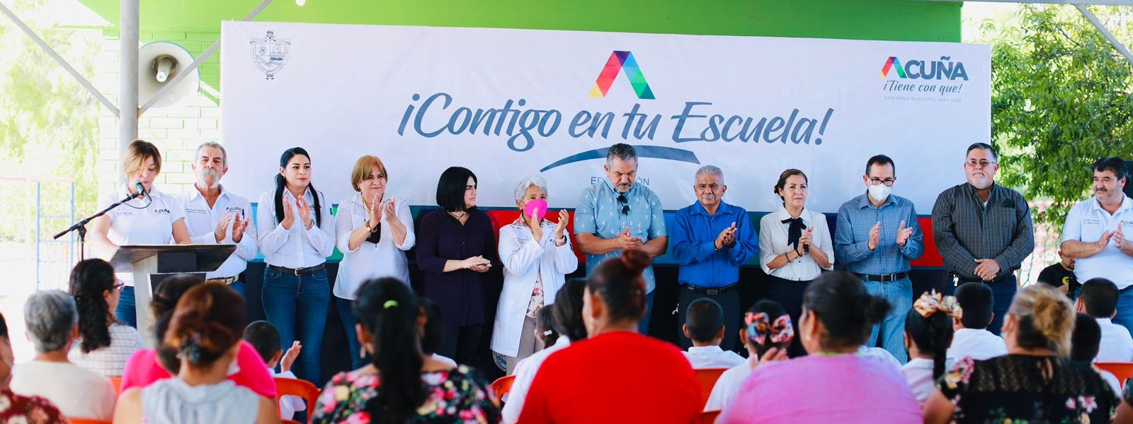 28 junio 2022; Acuña, Coahuila.- A petición de la directiva de la Escuela Primaria Rural “Presidente Benito Juárez García”, del ejido El Pilar, dependencias municipales llevaron acciones y servicios a este plantel dentro del programa “Contigo en la Escuela”, que congregó a la comunidad estudiantil y madres de familia; a su directora y maestra del grupo unitario, Dominga Palacios Carrillo y a la supervisora de la Zona Escolar 411, Patricia Banda Roque.