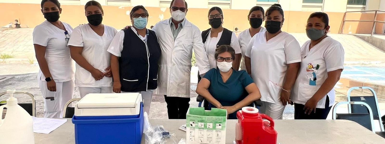 Bernal Gómez aplicó las primeras dosis en el drive thru instalado en el área de estacionamiento de esta unidad de salud.