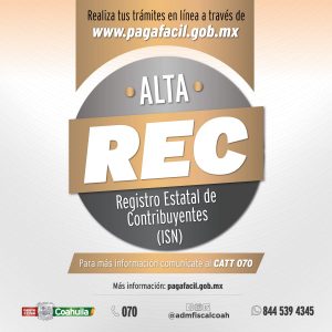 REALIZA TU ALTA EN EL REGISTRO ESTATAL DE CONTRIBUYENTES DESDE PAGAFÁCIL COAHUILA
