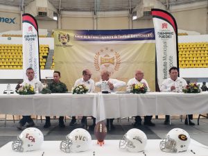 Cascos de equipos como los Apaches de la PVC, Gatos Negros del Instituto Tecnológico de La Laguna, Águilas Reales del Instituto 18 de Marzo, Borregos Laguna del Instituto Tecnológico y de Estudios Superiores de Monterrey, fueron firmados por los homenajeados.