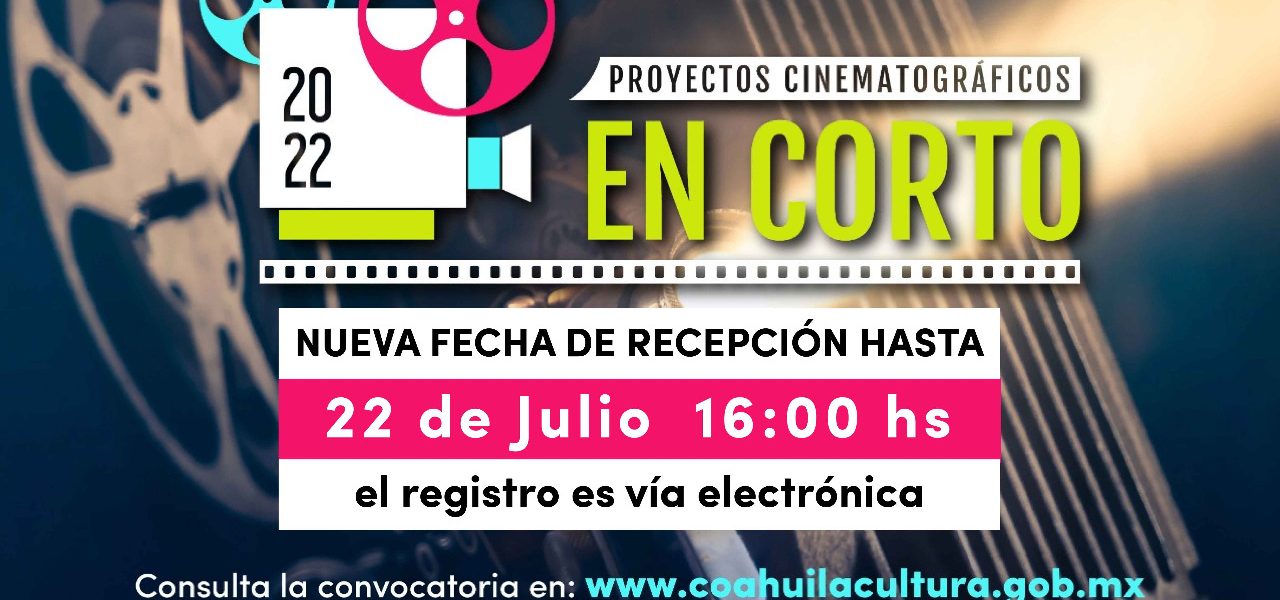 09 julio 2022; Saltillo, Coahuila.- La Secretaría de Cultura de Coahuila (SC) informa de la ampliación de dos importantes convocatorias: el Premio Estatal de Artesanía “Mis oficios, mis manos” y de “Proyectos Cinematográficos en Corto”, mismas que amplían su plazo hasta el viernes 22 de julio del año en curso a las 16:00 horas, recordando que el registro es vía electrónica.