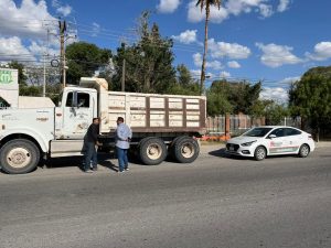 13 julio 2022; Torreón, Coahuila.-Con la finalidad de garantizar la Seguridad Vial de la ciudadanía que transita por las diferentes arterias del municipio, la Dirección de Autotransporte en Torreón mantiene operativos de revisión a camiones materialistas, para verificar que cumplan con las condiciones debidas, como es portar correctamente la lona y otros aditamentos.