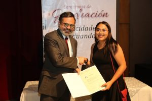 Pidió a los estudiantes que se pusieran de pie quienes ya están trabajando, acto seguido se levantó de su asiento más del 90 por ciento de los egresados: «Esto es el resultado del esfuerzo, de la dedicación y del empeño que durante todos estos años ustedes tuvieron en nuestra universidad».