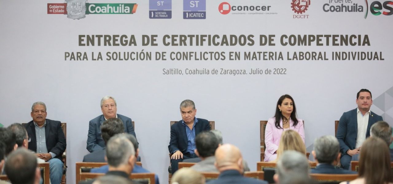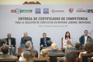 De igual manera, felicitó al Instituto de Capacitación para el Trabajo del Estado de Coahuila (ICATEC), que ha extendido sus funciones hoy a la certificación de los conciliadores conforme a los estándares oficiales de competencia laboral.