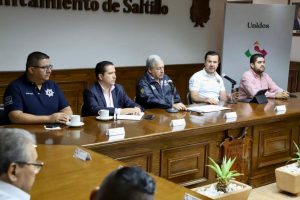 En la reunión semanal de seguridad participó el secretario del Ayuntamiento, Carlos Estrada Flores; el tesorero Juan Carlos Villarreal Garza; representantes del Ejército Mexicano y de la Guardia Nacional; y la directora del Consejo Cívico de Instituciones de Coahuila, Sara Arizpe Ramos.