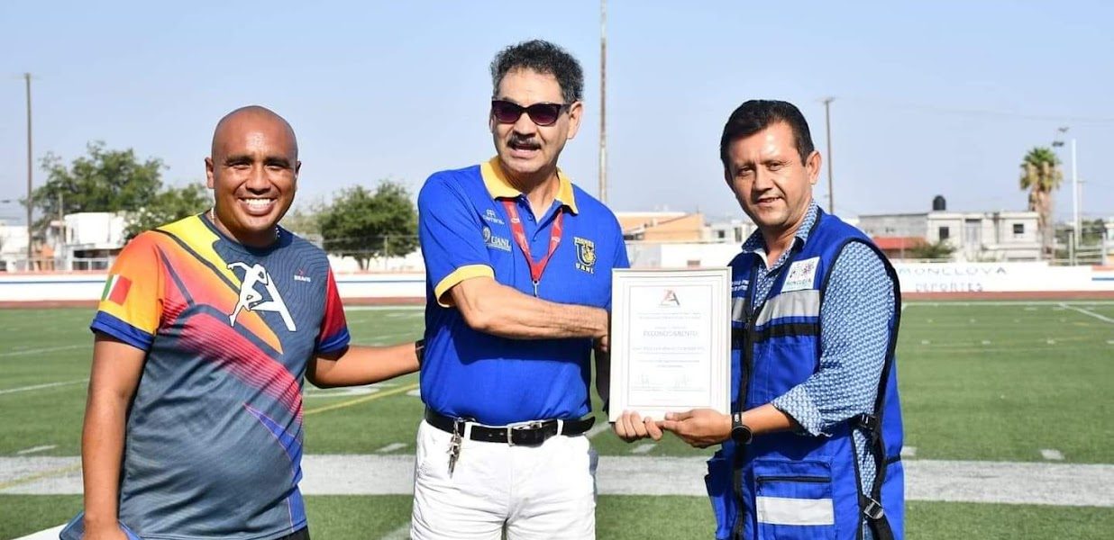 Edgar Ávila, director del Instituto Municipal del Deporte, en representación del alcalde Dr. Mario Dávila Delgado, hizo entrega del reconocimiento al destacado atleta, que ha dado muchas satisfacciones a Monclova, pues cada vez que ha participado en de atletismo estatales y nacionales, ha colocado en alto el nombre de nuestra ciudad.