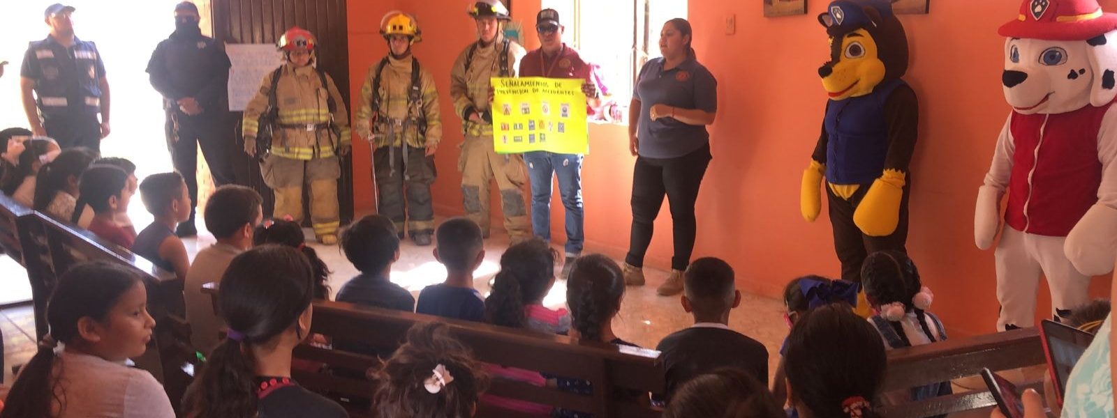 28 julio 2022; Francisco I. Madero, Coahuila.-En el ejido Benito Juárez y Mercedes, se llevaron a cabo platicas de Seguridad y Prevención para menores impartidas por elementos de seguridad pública , bomberos y protección civil, en coordinación con Caritas Torreón.