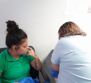 Expresó que durante la brigada en la empresa Gerber se realizó en algunas trabajadoras el test de papanicolau, también conocido como citología cervicovaginal, mismo que consiste en la toma de una muestra citológica que ayuda a detectar lesiones precursoras del cáncer de cuello de útero o del propio cáncer.